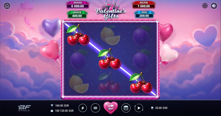 Love is in the air in 777 Valentine’s Gifts, a romantic new chapter in the 777 series from BF Games. Set against a dreamy Valentine’s backdrop filled with heart-shaped balloons and soft light, this slot transforms classic fruit reels into a celebration of love and luck. Symbols shine alongside sweet Valentine-inspired icons, while every spin feels wrapped in warmth and affection. With timeless gameplay and heartfelt surprises, 777 Valentine’s Gifts invites players to fall in love with classic slot fun all over again.