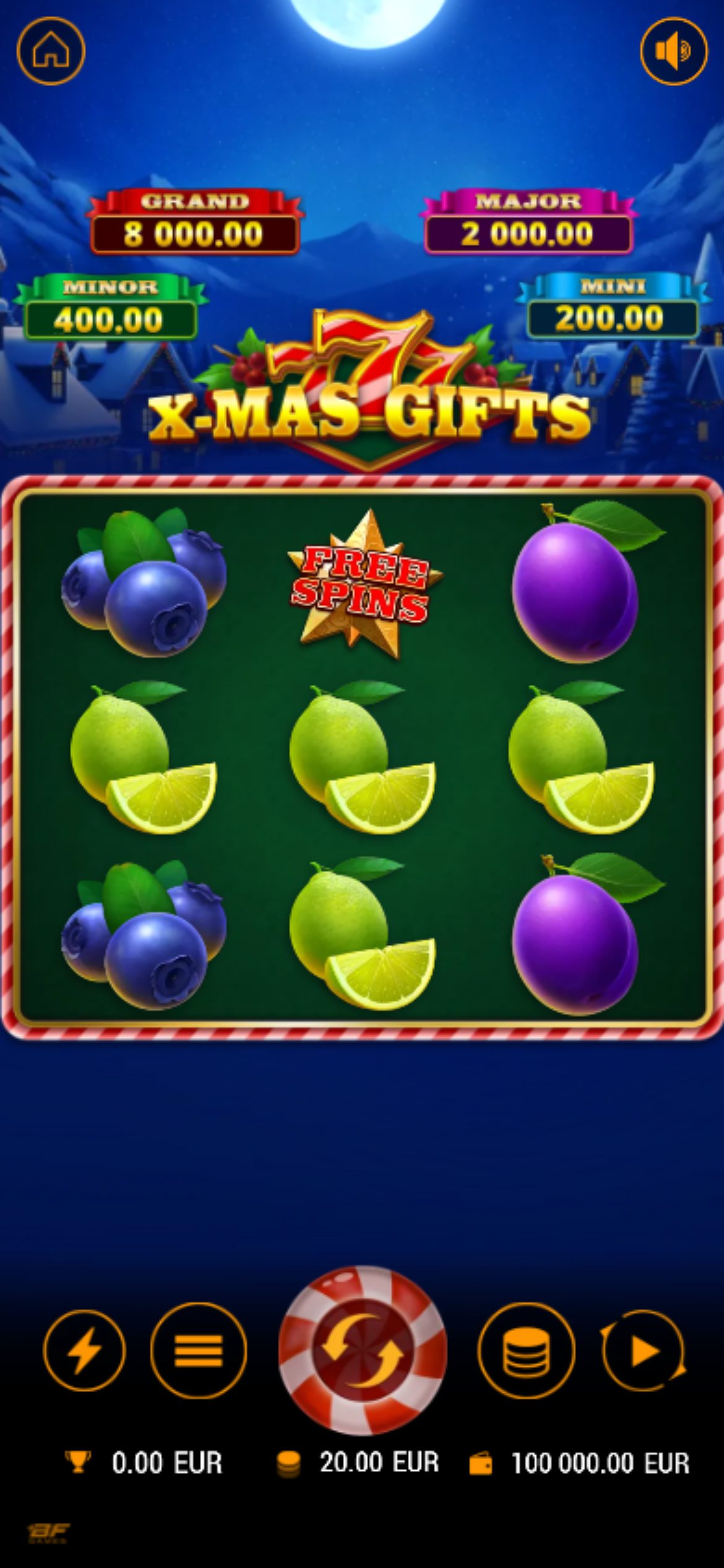 3 Reel Slot | 5 Paylines | Wild symbol | Free Spins | X-Mas Rewards
