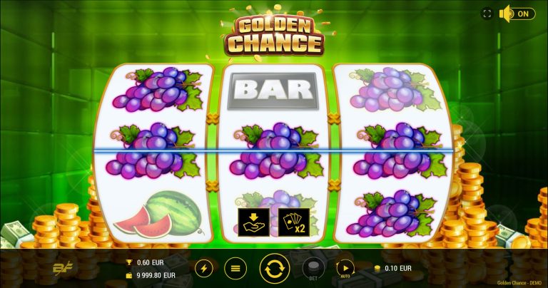Golden Chance™ video slot have 3-reels and 3-rows with 5 winning ways. Scatter wins are multiply by game bet. The 5 fruit symbols are stacked. Landing 9 equal fruit symbols (including an Expanding Wild) on the reels will multiply total winnings by 3. The classic slot game features Gamble Game Mode and Autoplay