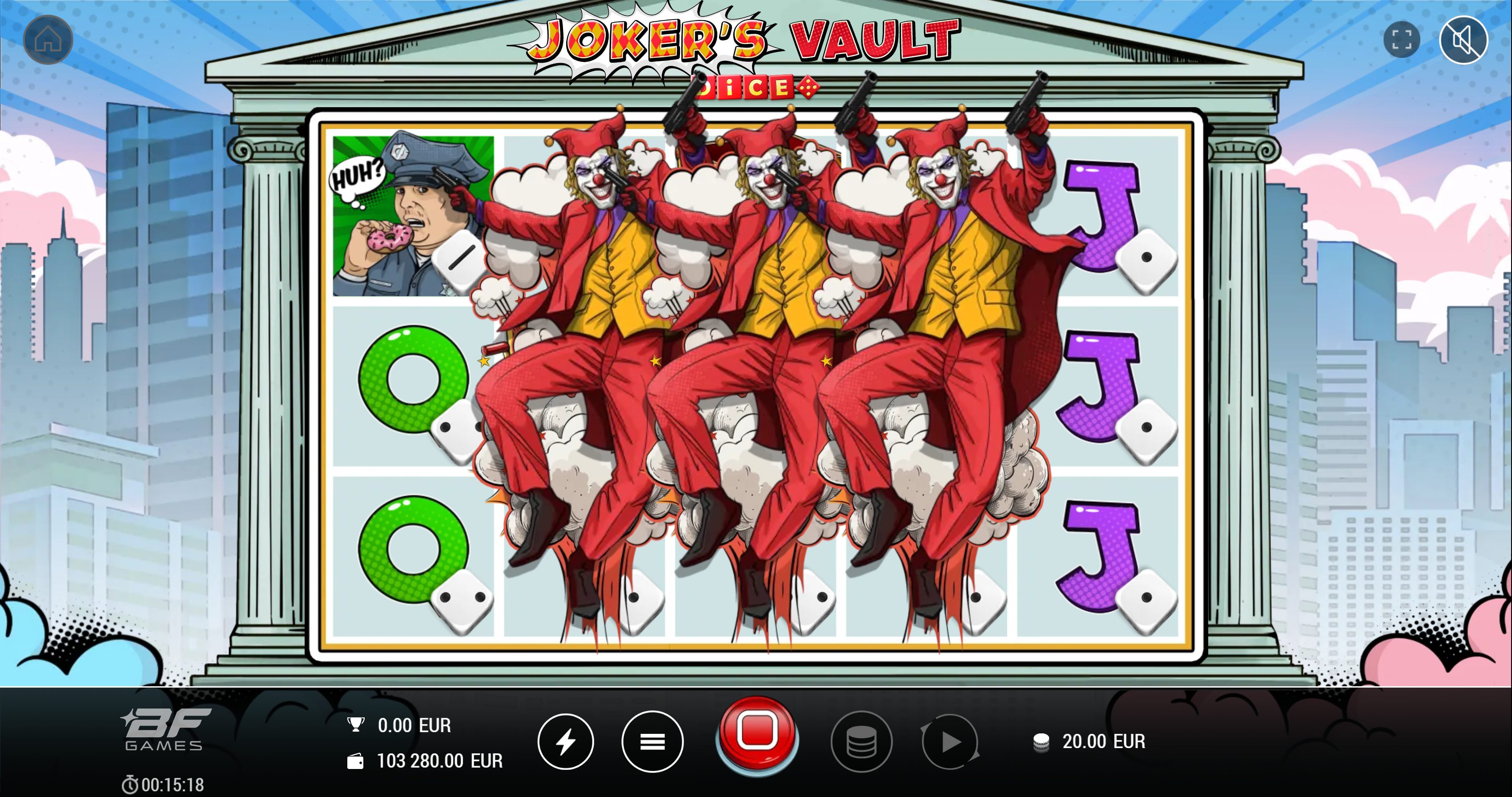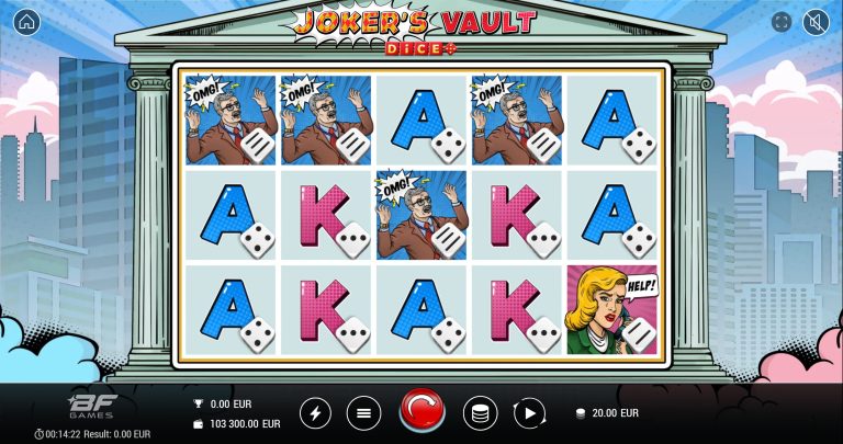 In Joker’s Vault Dice, the Joker’s got the reels rigged with tricks and treats! This 5-reel, 3-row slot packs 20 fixed paylines where matching symbols dance across the screen, starting from reel one and shimmying to reel five.