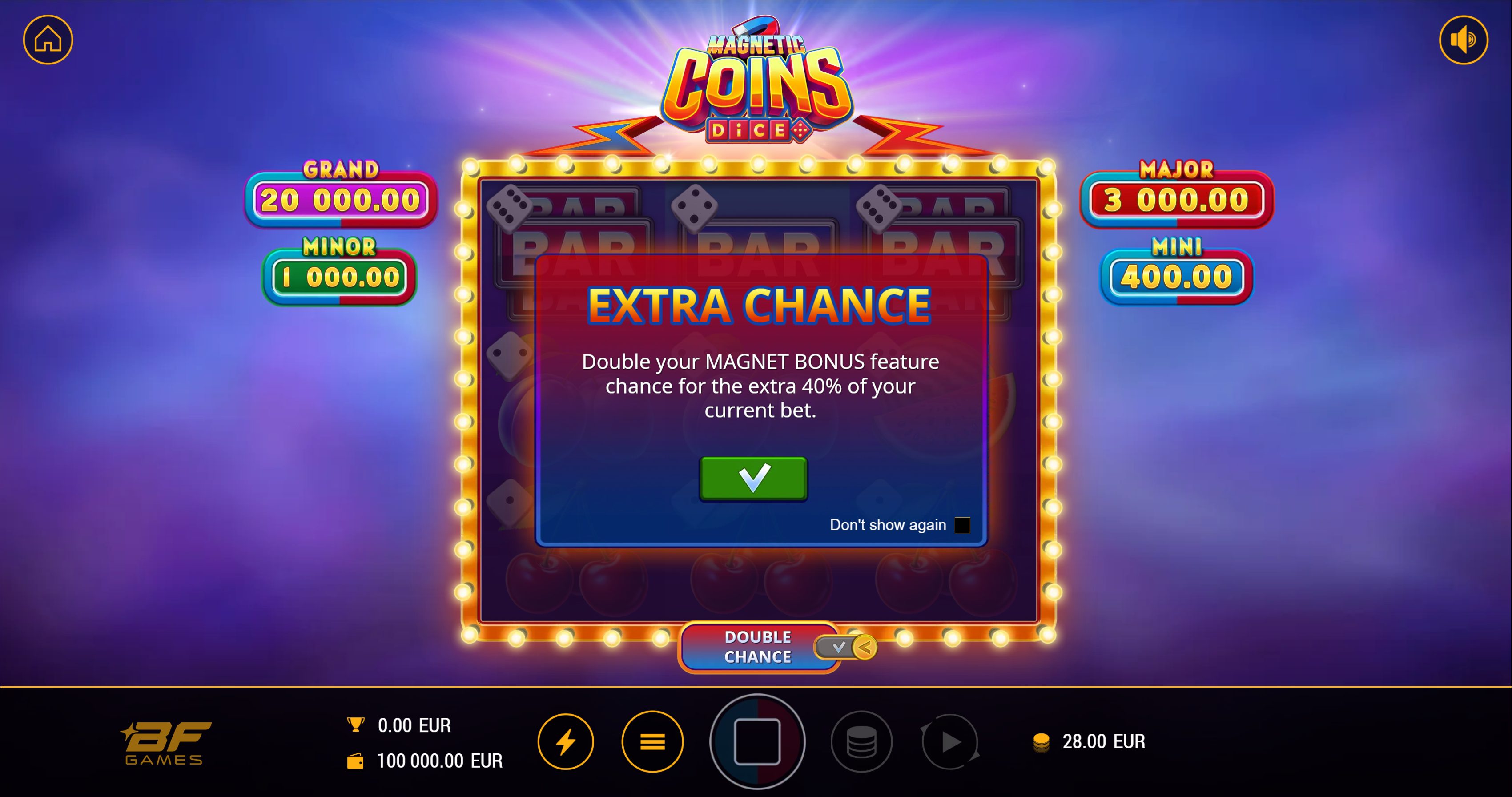 And it doesn’t stop there. The Pile of Gold feature can randomly trigger in the base game, adding enough bonus symbols to activate the Magnet Bonus unexpectedly. For players looking to up the ante, the Extra Chance feature can be toggled on, doubling the odds of triggering Pile of Gold at the cost of a 40% bet increase — all while keeping your win potential untouched. Magnetic Coins Dice is simple on the surface, but beneath its polished exterior lies a web of magnetic potential just waiting to be unleashed.
