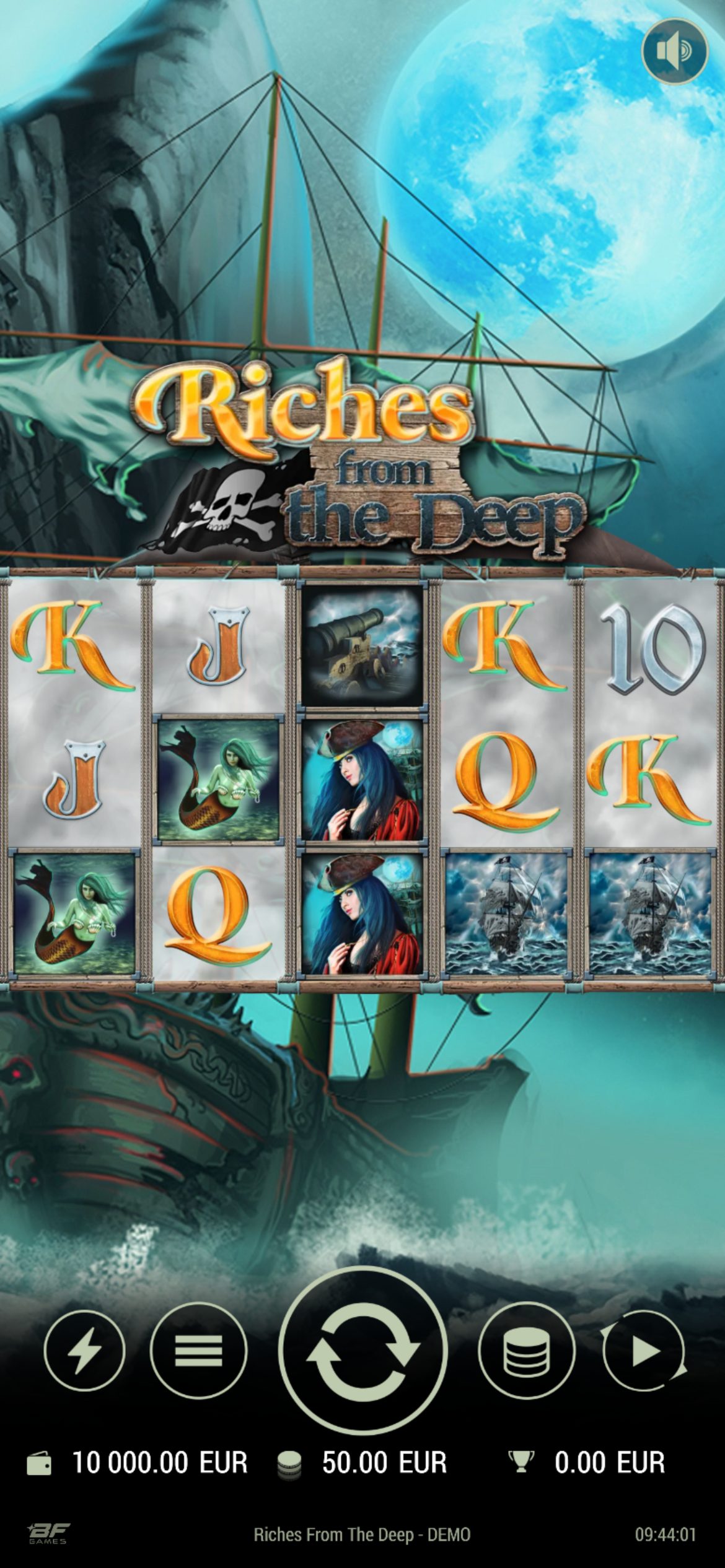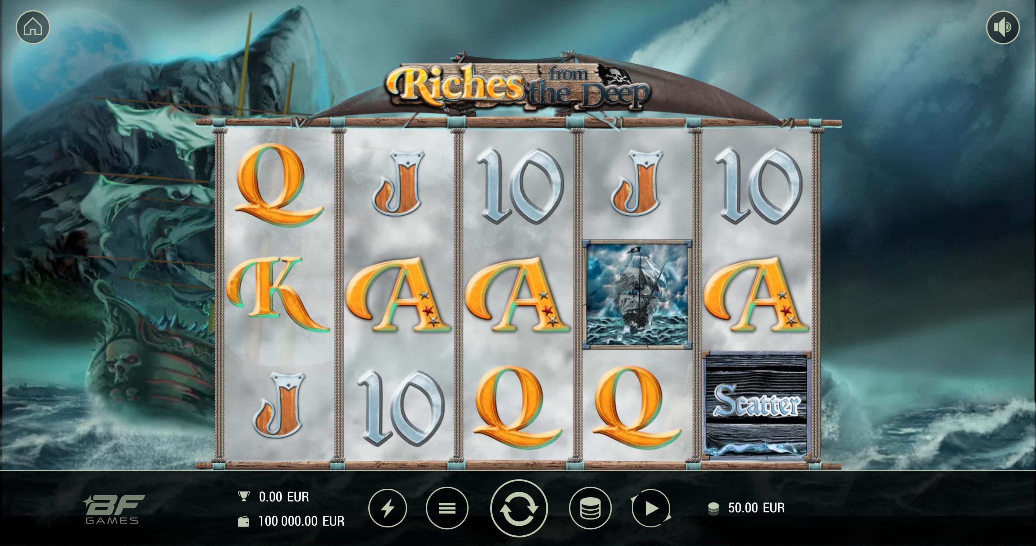The sky was shrouded in darkness, and thick fog was rising over the water. You are approaching the Bermuda triangle. Riches From The Deep™ is a legend about a sunken pirate ship with 12 chests filled with gold. Have you hear the mermaid singing? Is this your end or the beginning of truly royal life? Extract the crates from the depths of the ocean and see what is actually hidden in them. Good luck!