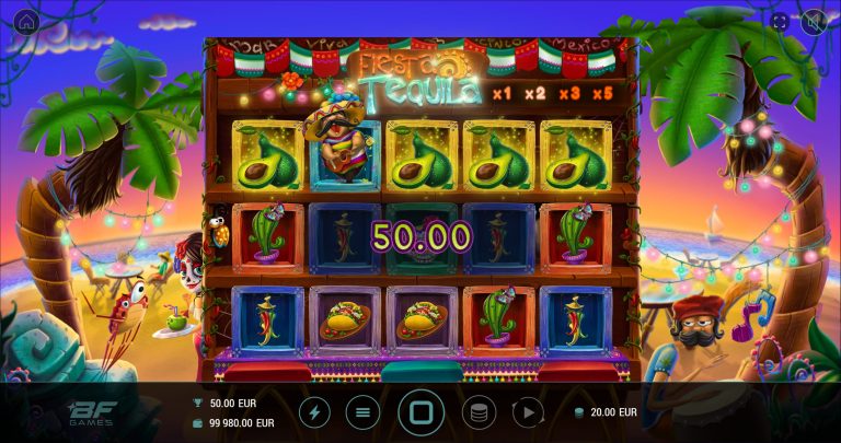 Try slot game for free and feel Mexican atmosphere by winning on 20 paylines. Look for the Bonus Symbol which can trigger 12 Free Spins and give you many opportunities for high winnings. After every win you can have a tequila shot, because cascade multiplier will increase you winnings.